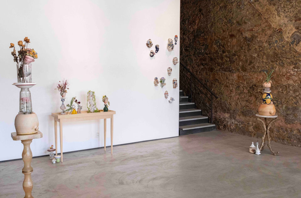 Para muitos dos povos originários das Américas, o barro é um parente ancestral. O processo da cerâmica confeccionava desde objetos utilitários do cotidiano até a urna que faz a passagem do corpo para outra dimensão. No cotidiano brasileiro é fácil encontrar os primos desses objetos na cozinha: um filtro de barro ou uma cumbuca denunciam sua herança genética. Em outra dinâmica cultural do outro lado do oceano Atlântico, os utensílios em porcelana encontrados e ressignificados por Carol nas suas assemblages retornam ao período da invasão portuguesa ao Brasil.