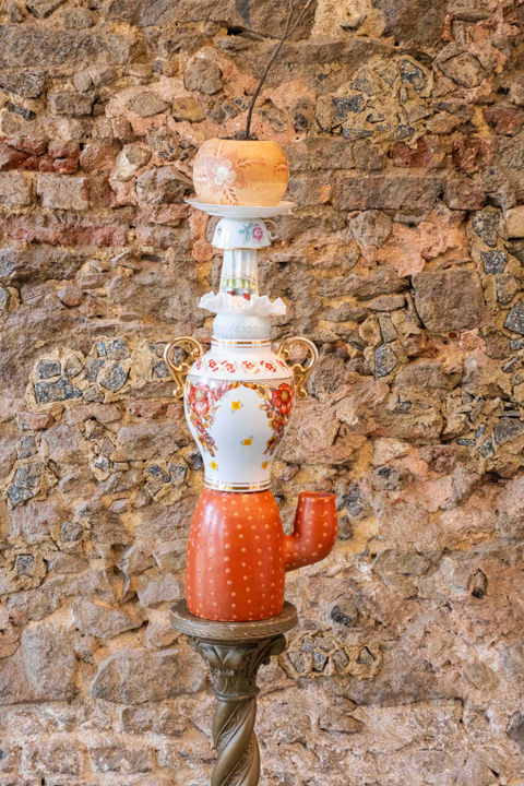 Carol Ambrósio é uma artista que nega a superficial dualidade entre o que é a obra e o que é a artista. Os conceitos e a vida se mesclam. Sua linguagem é uma coleção pessoal que une sua bagagem de experiências e seu olhar aguçado para encontrar peças e objetos que carregam histórias. A composição da mostra Sempre Viva, que conheceremos a seguir, também é feita por essas histórias. Carol usa um repertório que lhe é familiar: relíquias de cerâmica e achados em porcelana. A artista cresceu entre estantes e prateleiras do antiquário do seu pai, submersa no encantamento de desbravar um salão de preciosidades. Hoje, nas estruturas que confecciona, seleciona cada artefato em feiras, leilões, mercados, viagens e, claro, antiquários, e os une em aparente equilíbrio.