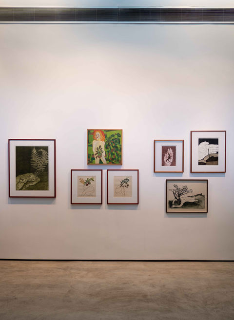 Recentemente, em 2017, pesquisadores documentaram áreas de floresta domesticada na Amazônia datadas de mais de 8.000 anos. Publicado na revista Science, cientistas e ecologistas liderados pela brasileira Carolina Levis, na época doutoranda do INPA (Instituto Nacional de Pesquisas Amazônicas) e da Universidade de Wageningen, mapearam regiões na Bacia Amazônica, próximas a sítios arqueológicos, que comprovam a influência de povos originários na distribuição de plantas. Os estudos não apenas indicaram o avançado conhecimento sobre manejo de terra e preservação da floresta, como também identificaram mais de 85 espécies que tiveram influência dos povos pré-colombianos em sua dispersão. Mais abaixo no mapa brasileiro, mergulhada na Mata Atlântica sobrevivente no Brasil, Natali Tubenchlak não tenta domesticar suas “Desvairadas”, cologravuras de grande formato criadas a partir de matrizes desenvolvidas com folhas que coleta e utiliza para estruturar corpos preenchidos de registros de espécies nativas. Assim como na natureza selvagem - como aquilo que se desenvolve naturalmente -, essas impressões estão libertas da moldura. O cultivo de Natali é em seu próprio processo. Camadas temporais transformam o vestígio orgânico em um organismo gráfico.